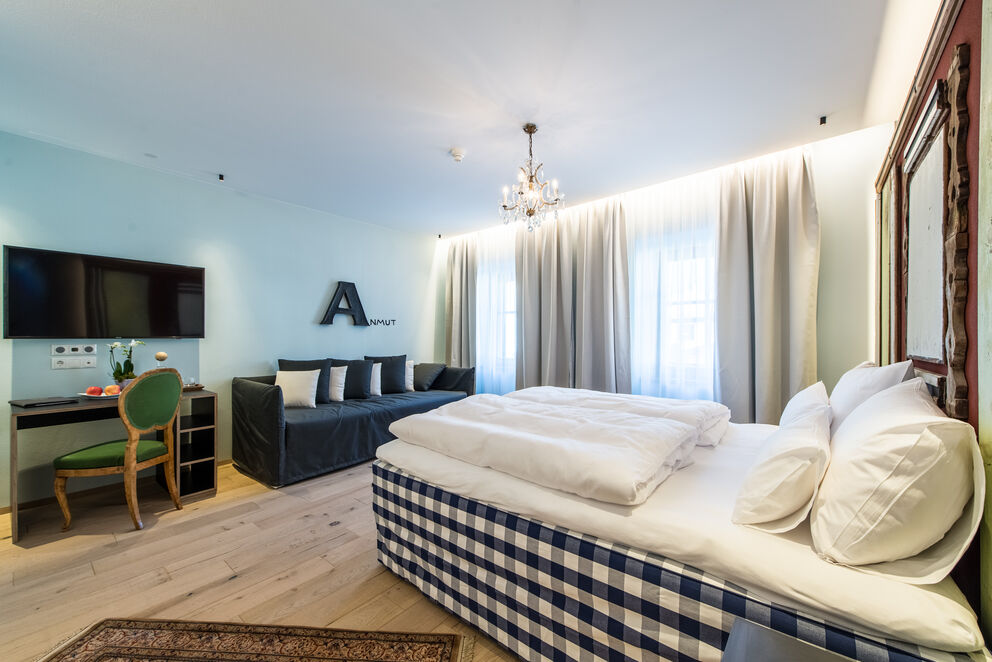 Suite (ca. 50-60 m2) for 1-2 people: 1 double room with Hästens bed and living room with Hästens sofa bed
